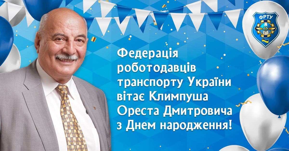 Федерація роботодавців транспорту України щиро вітає вельмишановного Голову ФРТУ – Ореста Климпуша з Днем народження!